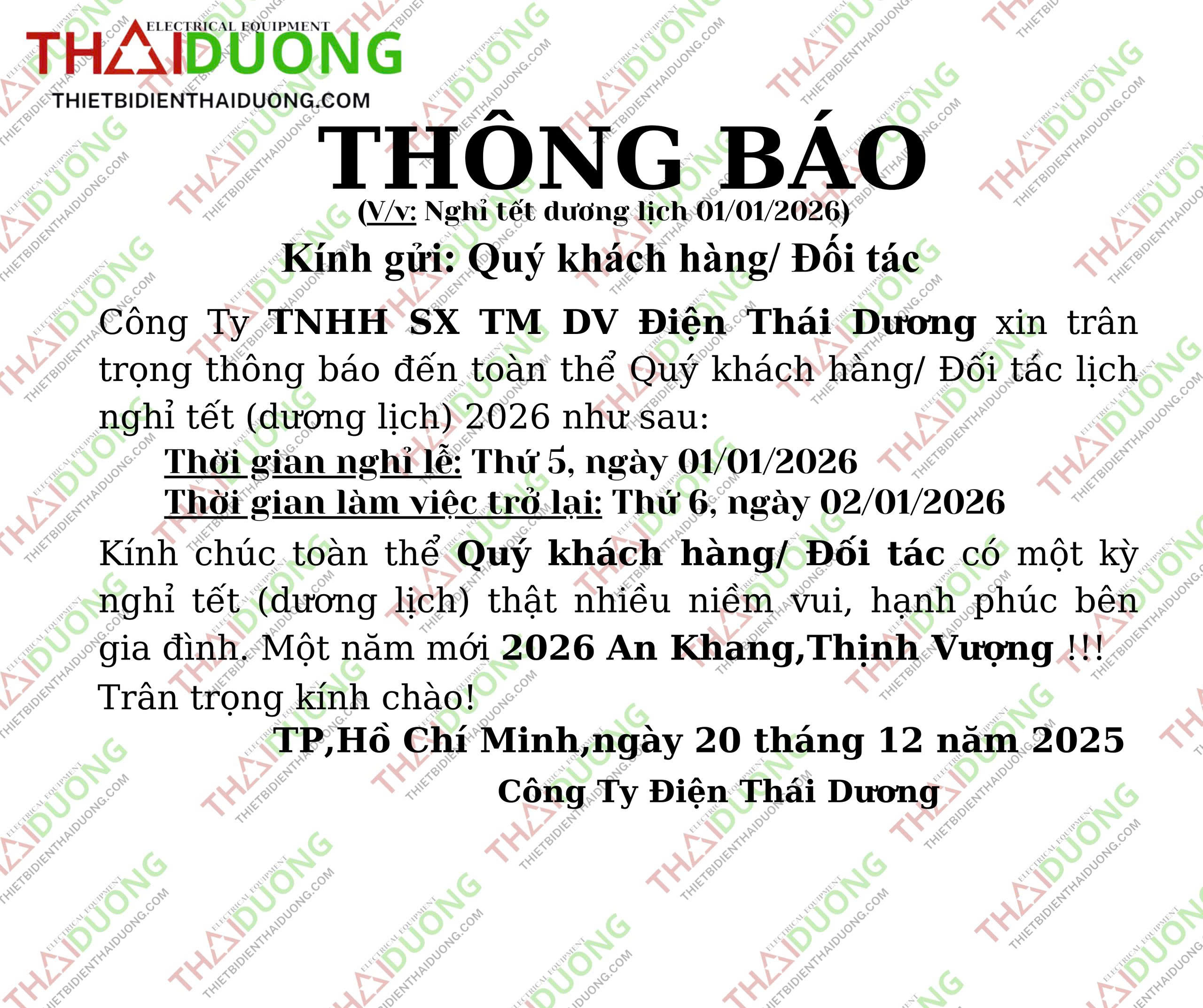 THÁI DƯƠNG ELECTRIC THÔNG BÁO NGHỈ TẾT DƯƠNG LỊCH